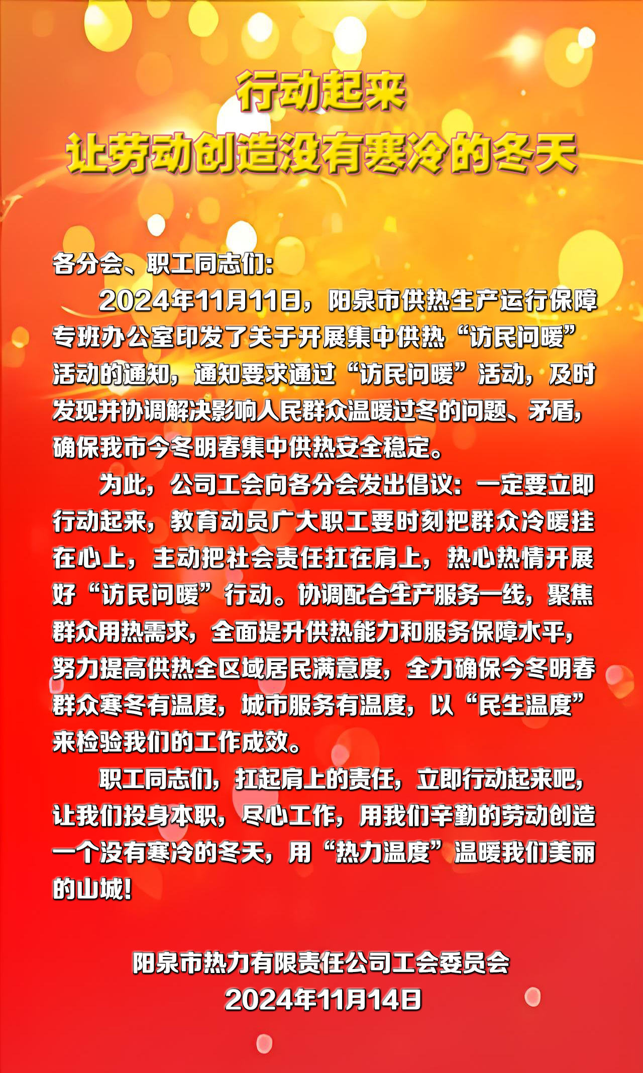 “訪民問暖”倡議書